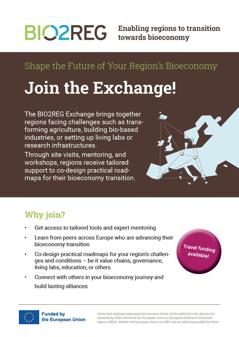 The circular bioeconomy, which uses renewable biological resources and technologies to produce food, materials, or energy, can play a crucial role in shaping structural change. It has the potential to create new value networks, thereby promoting knowledge-based growth and jobs, ecosystem revitalisation and resilience, resource efficiency and circularity, and innovation, while taking into account the context-specific economic, social and environmental conditions of a region. However, regional stakeholders seeking to unlock this transition potential of the bioeconomy often lack the necessary operational know-how, frameworks and financial support.